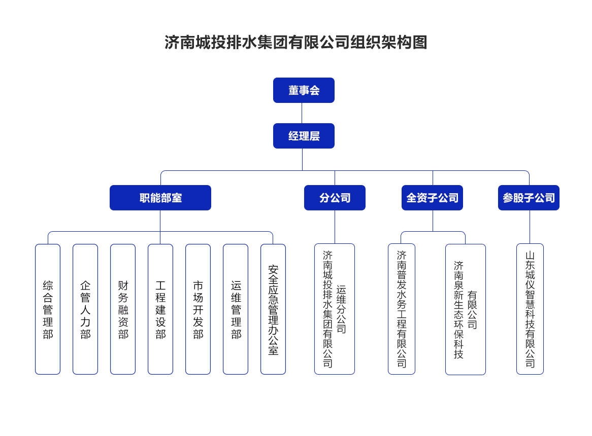 定位专业化排水、污水处理、河道和再生水设施投资、建设、运营、服务单位,承接城市防汛、中心城区雨污合流管网改造及城市内涝治理项目。负责统筹全市排水和再生水利用的统一规划、投资、建设、运营、管理等。