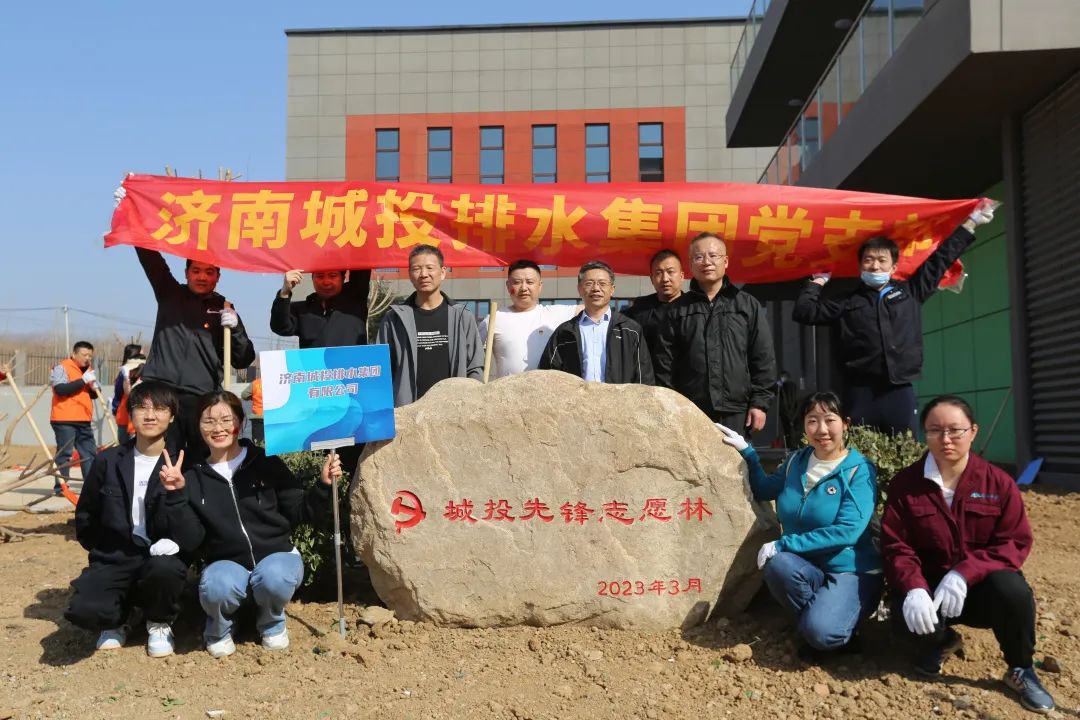 城投排水集团党支部、普发工程公司党支部组织党员职工前往长清区马山镇乐耕家园小学,参加365英国上市公司第三届“城投先锋志愿林”植树活动。