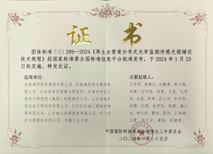 济南城市投资集团有限公司的统筹推动下,城投排水集团起草编制的《再生水分布式光学监测传感光缆铺设技术规程》团体标准正式发布,这也是我...