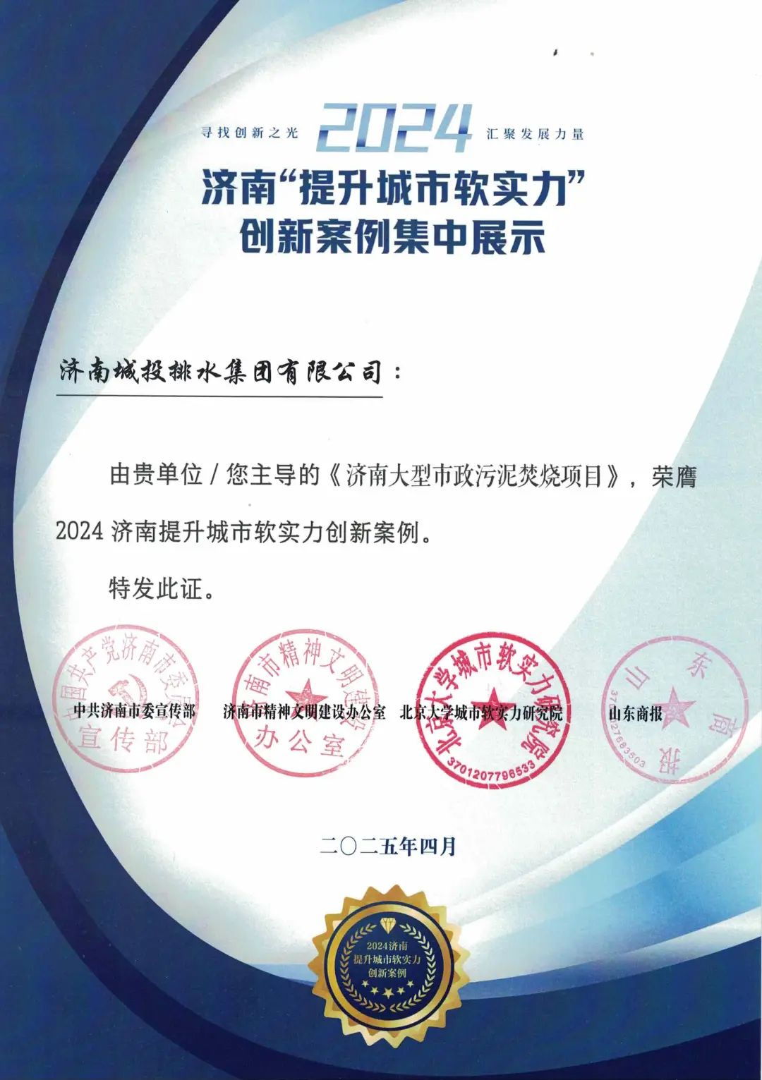 365英国上市公司建设的济南市污泥处置中心项目成功入选济南市2024年度谋划项目二十个优秀案例。